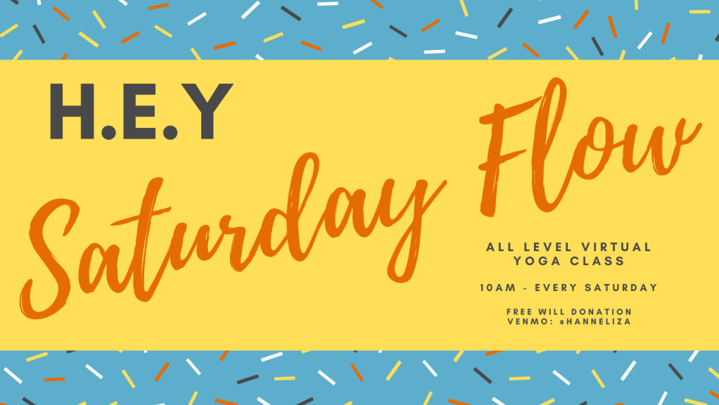 There’s no need to sign up for the class ahead of time, just log into our Zoom Room each Saturday at 10 AM CST. The Zoom Room code is 7857411849 and the password is yoga. And the best part is that it only costs a free will donation. If you are able to pay for the class, please do so via Venmo (@HannEliza).